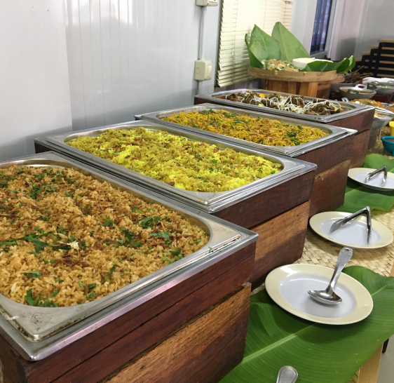We have the ability to cater to any location with 100 Km from Paramaribo.We can deliver ready-to-go meals in boxes and also set up a full buffet.We mainly use the local products to create a delightful fusion of international cuisine